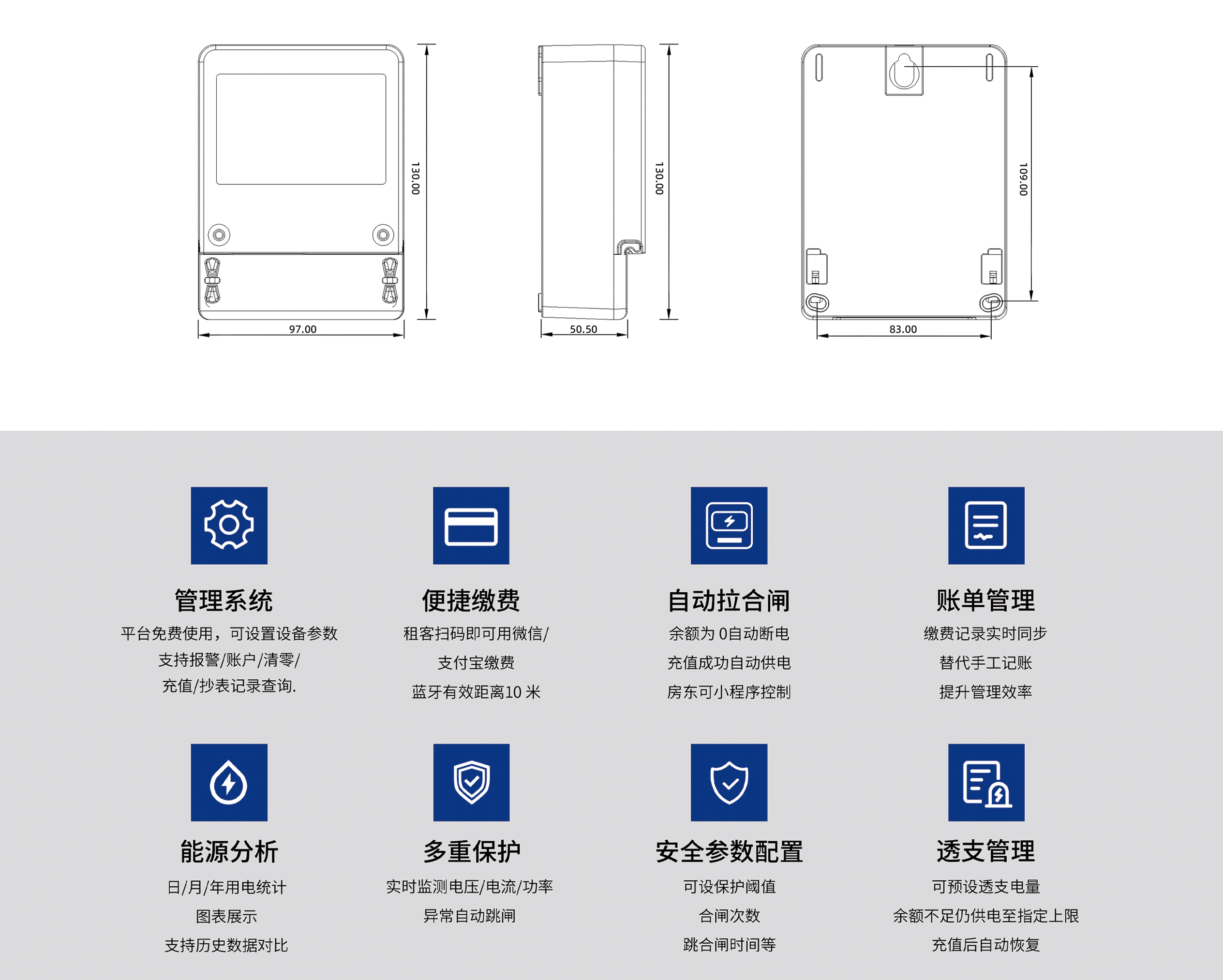 本產(chǎn)品運用先進的單片機處理系統(tǒng),實現(xiàn)數(shù)據(jù)的采集、處理與存儲。替換傳統(tǒng) IC 卡預(yù)付費電表,采用藍牙通信功能,能夠通過藍牙與手機連接...